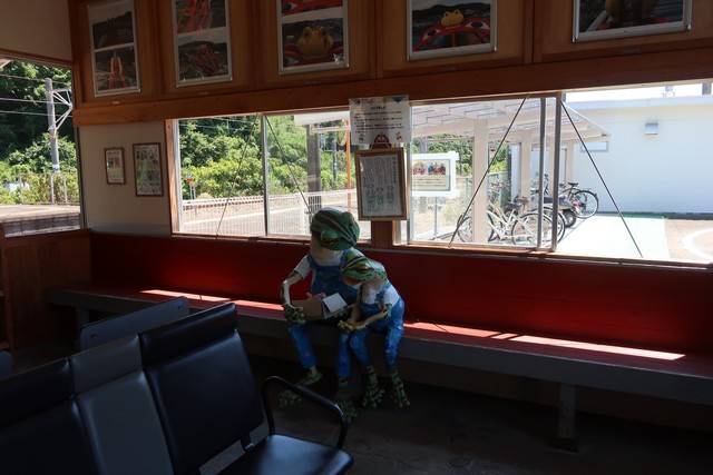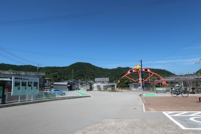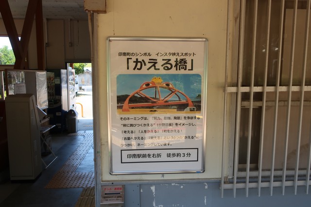 駅前には「かえる橋」というカエルの顔をかたどった大きな橋があります。