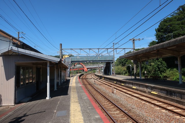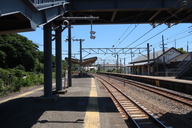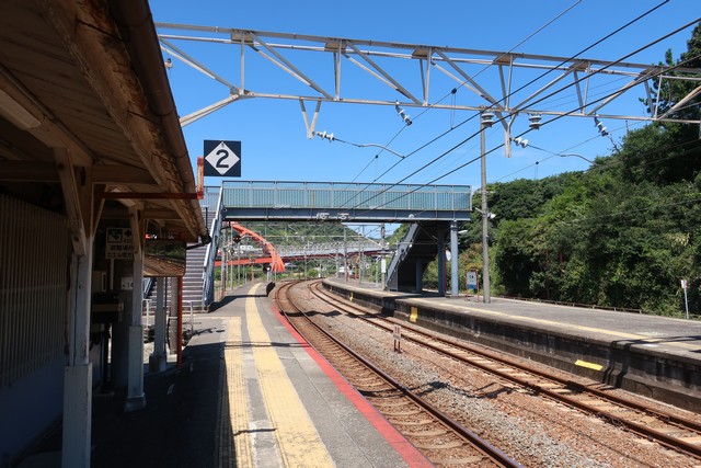 配線は2面3線の国鉄型配線で、中線は特急退避用に使われます。