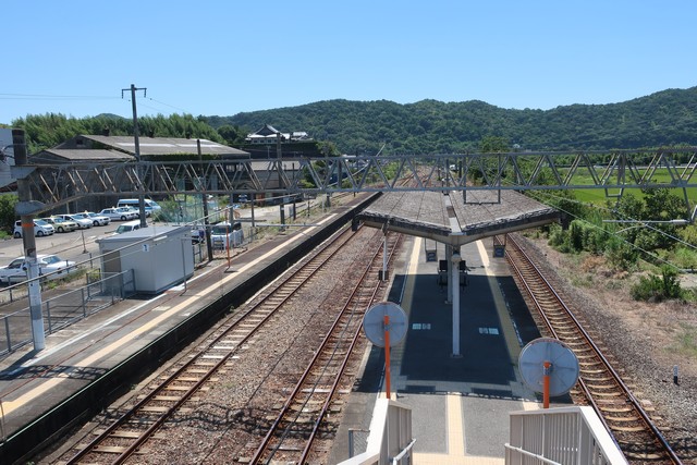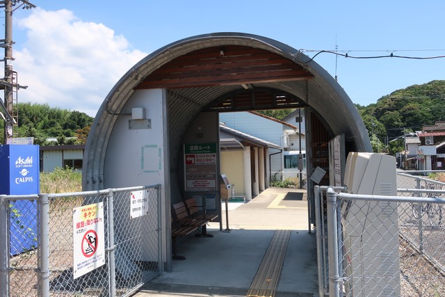 和佐駅(JR紀勢線) X Facebook はてブ LINE コピー 2025.10.14 スポンサーリンク 和佐駅は円形の超簡易駅舎のみの無人駅です。 駅舎は簡易ですが、線路構成は2面3線の国鉄型配線とやや充実しています。 中にはベンチが設置されています。 小型の運行情報表示用のディスプレイがあります。 駅ノートならぬ、サイクルノートがあります。 1番のりばです。 貨物側線も残されています。 2・3番のりばです。 2番のりばが中線で、特急退避用のようです。 駅前は住宅地です。 駅前にタクシー会社があります。 訪問日:2024年8月