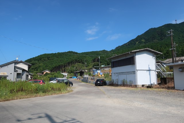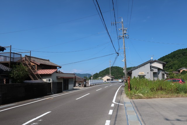駅前の道路です。住宅や倉庫があります。