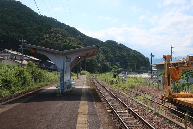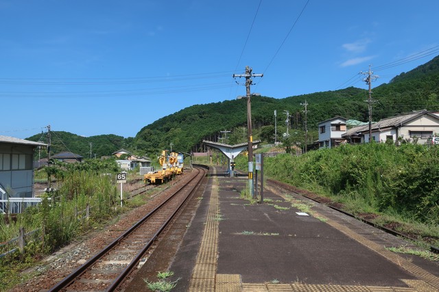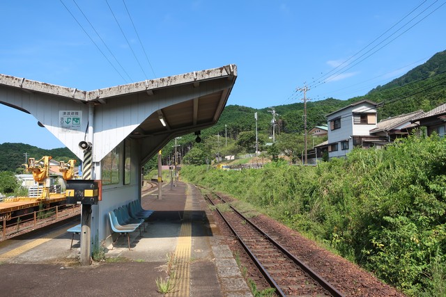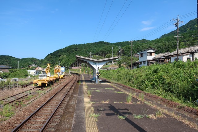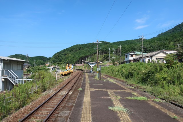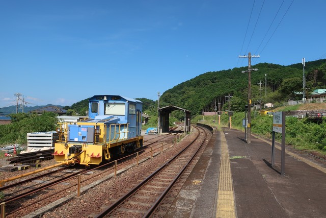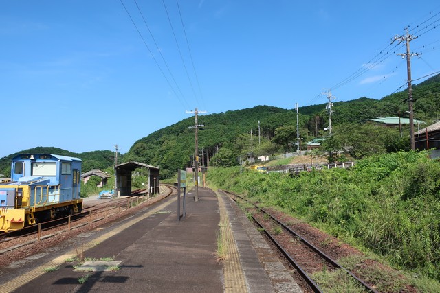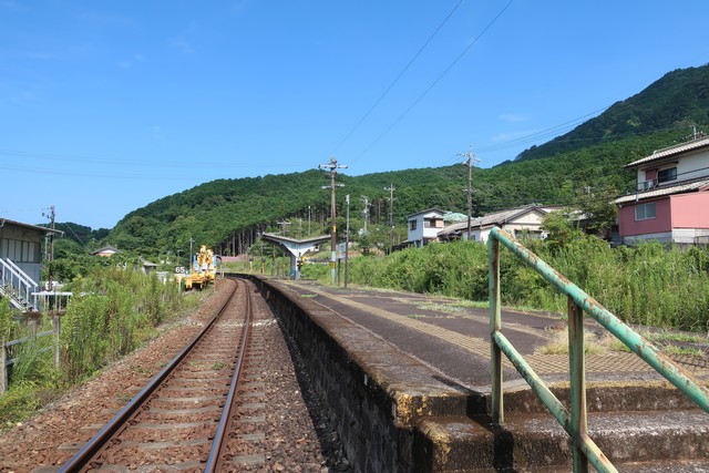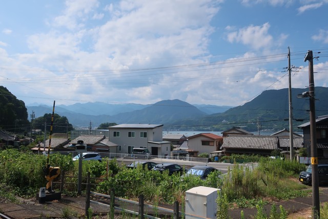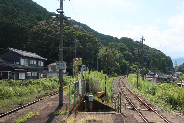 大曽根浦駅は周囲の道路より少し高いところにあり、ホームから海が遠くに見えます。