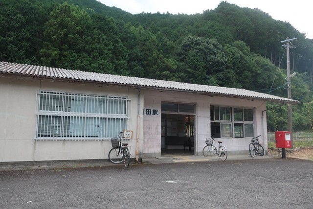 賀田駅はコンクリート造の駅舎がある無人駅です。