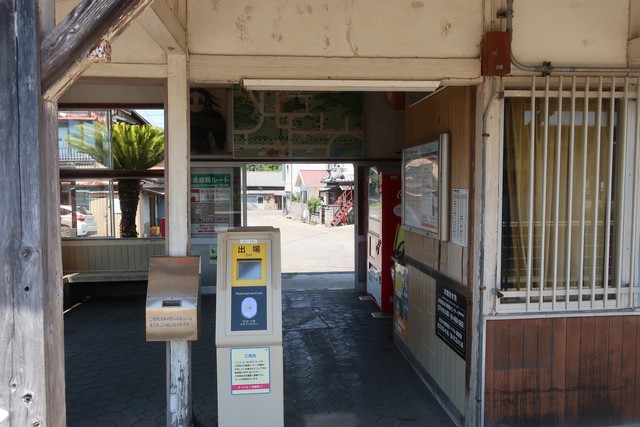 なぜか駅の入り口にホーロー風の駅名看板がついています。