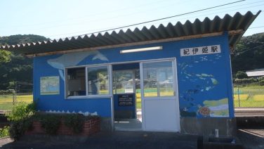 紀伊姫駅は簡易駅舎のみの無人駅です。北海道の閑散駅のような風合いで、1面1線の棒線駅です。線路の向こう側は田んぼが広がっ...